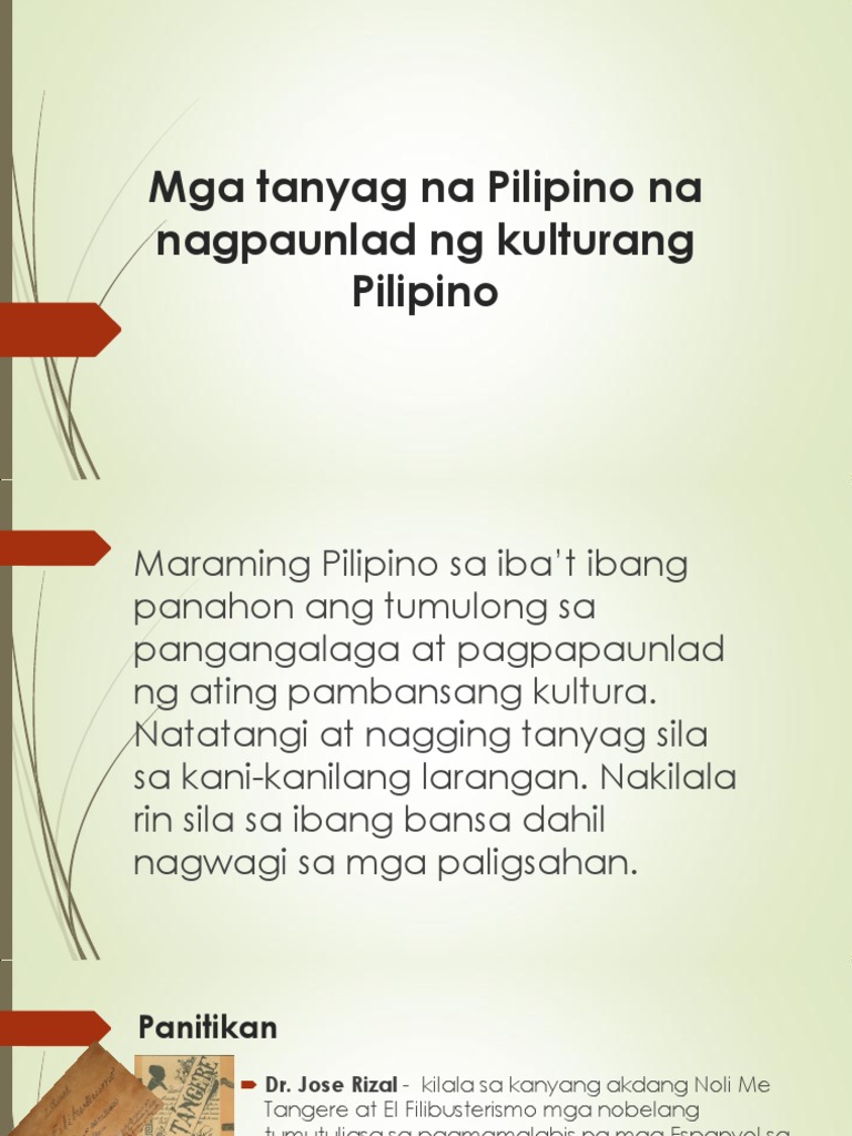 Mga Tanyag Na Pilipino Na Nagpaunlad Ng Kulturang Pdf