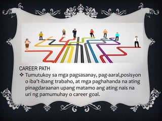Ang preperensiya ng uri ng pakikisangkot sa isang gawain. Nakasusuri ng mga sariling hilig ayon sa larangan at tuon ng mga ito 3. Sa pagpili mo ng kursong akademiko o teknikal-bokasyonal.