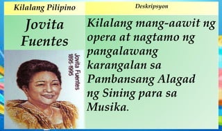 MGA NATATANGING PILIPINO SA IBAT IBANG LARANGAN. 2 Montrez les réponses. Heto Ang Mga Kilalang Personalidad Sa Larangan Ng Panitikan.
