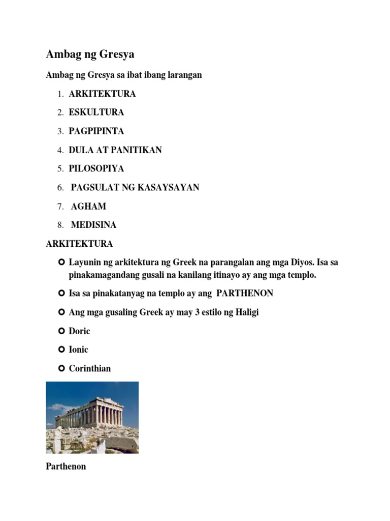 Ambag ng greece sa larangan ng arkitektura. Ano-ano ang mga naging ambag ng sinaunang kabihasnang Greek sa ating kasaysayan na patuloy nating napapakinabangan. Course Title HISTORY 1A. Learn vocabulary terms and more with flashcards games and other study tools.