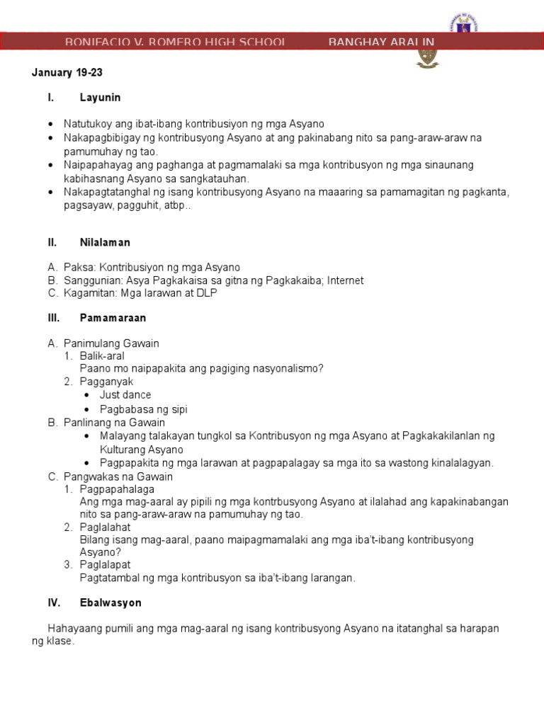 Curriculum Guide of K to 12 Senior High School Applied Track Subject Araling Panlipunan for grades 7. Teachers Guide PDF. Sa pagbuo ng kabihasnang Asyano at sa kabila ng naranasan na pananakop naipakita dito ang maipagmamalaking mapagkakakilanlan mataas na kakayahankatalinuhan at kakaibang galing ng mga Asyano sa ibat ibang larangan tulad ng sining humanidades at pampalakasan.