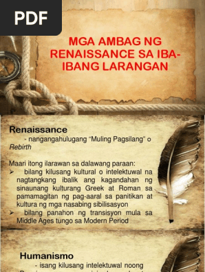 Mga Ambag Ng Renaissance Sa Ibat Ibang Larangan - Free download as Powerpoint Presentation ppt pptx PDF File pdf or view presentation slides online. Si Amorsolo ay isang pintor ng mga larawan ng mga tao at tanawing pambaryo ng Pilipinas. Mga Ambag ng Renaissancesa iba-ibanglaranganSa Larangan ng Sining at PanitikanFrancesco Petrarch 1304-1374.