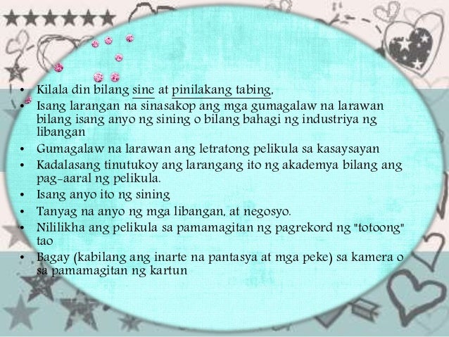 Anong larangan ang pelikula. Kinikilala nito ang kahusayan ng mga Pilipino sa ibat ibang larangan tulad ng Musika Sayaw Teatro Sining-Biswal Panitikan Pelikula Sining-Pamamalita at Arkitektura. Anong elemento ng pelikula ang binibigyang-pansin sa pagkakaroon din ng simula gitna at wakas nito kung saan kailangang sunod-sunod ang mga pangyayari nito. Dito hindi nalilimita ang mga tao sa kung anong wika ang gagamitin kaya naman mapapansin na kalimitan na lamang ang gumagamit ng purong Filipino.