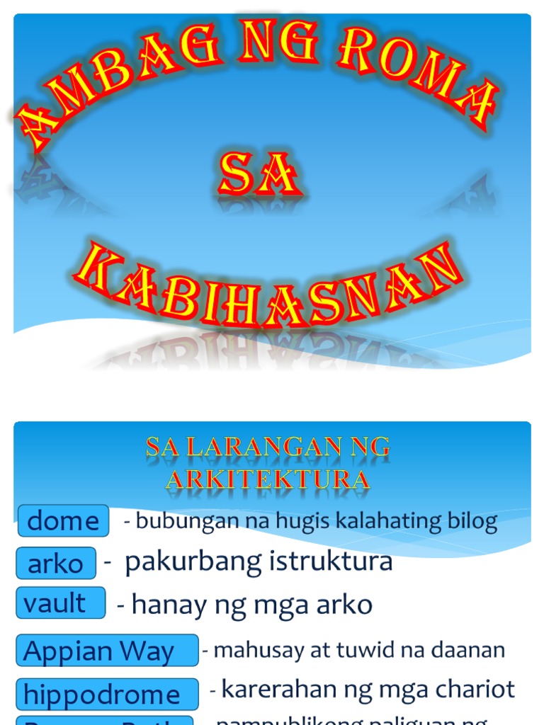 Ambag ng rome. Pamana ng kabihasnang greek arkitektura 1.