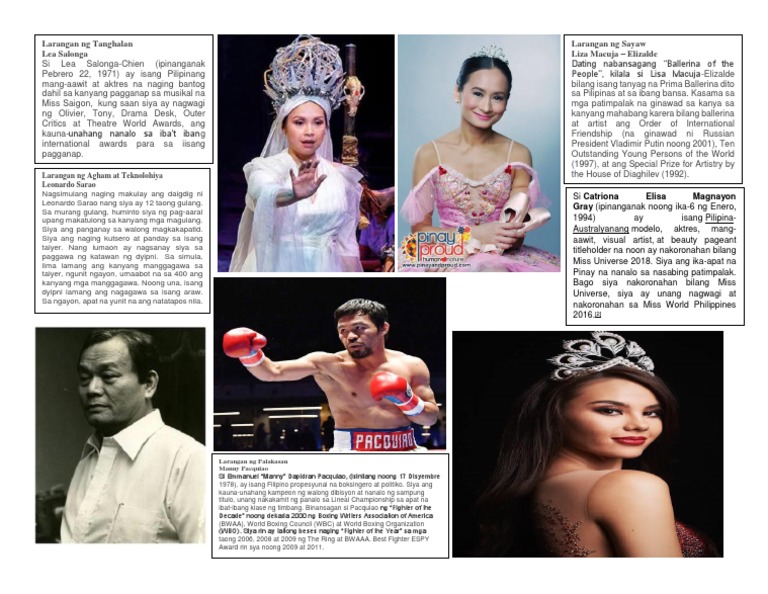 Tamang sagot sa tanong. Larangan ng pag awit sarah asher tua geranimo larangan ng pagandahan gloria maria aspillera diaz larangan ng palakasan manny pacquiao larangan ng paglililok napoleon abueva larangan ng sayaw liza macuja larangan ng agham at teklohiya leonardo sarao larangan ng musika levi celerio explanation. Gawain Sa Pagkatuto Bilang 3 Mosdan Ang Mga Larawan Nang Mganagpapakita Ng Pagpapahalaga Sa Kulturang Brainly Ph - Nov 04 2013 cariƱosa araw ng patayundas po at opo ang cariƱosa o karinyosa ay isang magiliw na sayaw ng magkaparehang babae at lalake na animoy nasa aktong nagliligawan.
